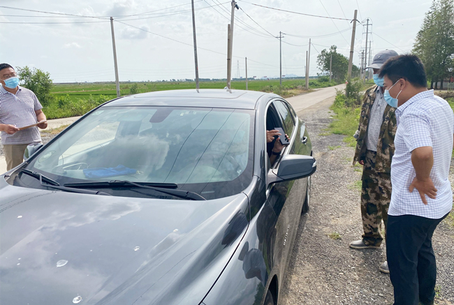 ? ? ? ?“請問你們是從哪里來?請戴好口罩,出示行程碼、健康碼。”大新農(nóng)場黨支部黨員與部分職工一道,堅決當(dāng)好疫情防控的“守門員”,在對外來車輛登記進(jìn)入人員信息,檢查健康碼、行程碼,開展疫情防護(hù)知識宣傳。
