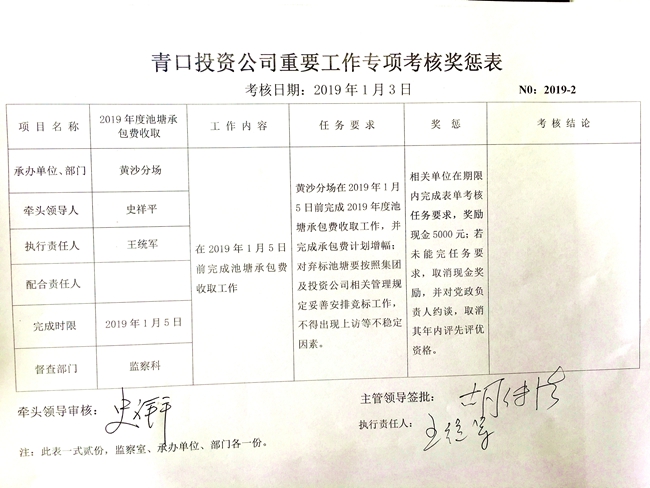 【表單考核】青口投資公司重要工作專項(xiàng)考核獎懲表