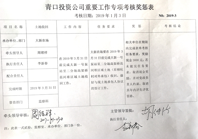 【表單考核】青口投資公司重要工作專項(xiàng)考核獎(jiǎng)懲表