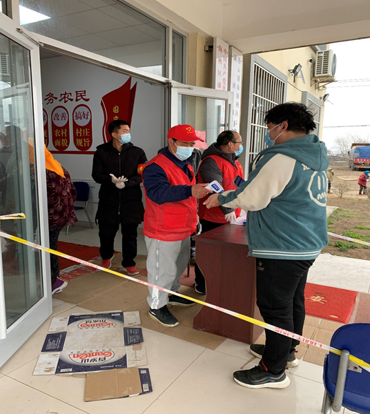 公司員工范益楊、李夢達(dá)是集團(tuán)抗疫志愿隊的隊員。在冷冽寒風(fēng)中,他倆身穿防護(hù)服挨家挨戶通知商戶暫停營業(yè),同樣的通知話語不厭其煩的重復(fù)著一遍又一遍,說得口干舌燥、疲憊不堪也未能阻攔他們繼續(xù)前進(jìn)的腳步。