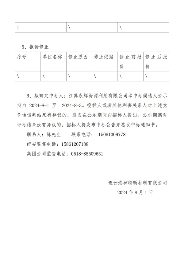 神特公司2024年危廢處置服務(wù)中標候選人公示