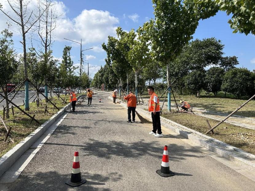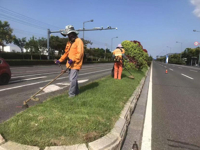 保障園區(qū)“塑新顏”。節(jié)日期間,開發(fā)區(qū)轄區(qū)的主干道上、公園、廣場、支路等公共綠地,隨處可見臺北(華茂)綠化養(yǎng)護(hù)人員堅(jiān)守一線的忙碌身影,他們放棄與家人團(tuán)聚,重點(diǎn)對玉竹路、佟圩路、銀臺路、242 省道等路段綠籬、模紋、草坪進(jìn)行整形修剪,對堿廠南路等路段綠化帶內(nèi)低矮喬灌木進(jìn)行打藥治蟲,對展覽中心、黃海大道等轄區(qū)內(nèi)及時(shí)清理綠化帶雜草、撿拾草根、干枝等綠化垃圾,保持綠化帶干凈整潔美觀。益豐園林分公司綠化班全員放棄節(jié)日休假,外拓市場,與綠化分公司聯(lián)動(dòng)赴徐圩消防大隊(duì)院內(nèi)開展突擊修剪行動(dòng),他們不怕臟、不怕累,共修剪灌木球50余棵,灌木叢7000余平方米。