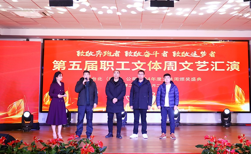 12月27日下午,臺(tái)北(華茂)公司第五屆職工文體周閉幕式暨頒獎(jiǎng)文藝匯演活動(dòng)在環(huán)保裝備產(chǎn)業(yè)園圓滿落幕。公司領(lǐng)導(dǎo)、各單位黨政工負(fù)責(zé)人(項(xiàng)目部負(fù)責(zé)人)、各部門負(fù)責(zé)人、星級(jí)員工、受表彰人員、演職人員觀看演出,特邀請(qǐng)集團(tuán)紀(jì)委書記張興林,集團(tuán)黨建人資部部長(zhǎng)夏正斌、集團(tuán)紀(jì)檢組組長(zhǎng)王建松、集團(tuán)工會(huì)副主席陸向東、集團(tuán)紀(jì)委副書記喻敏等同志到場(chǎng)觀摩、指導(dǎo)。