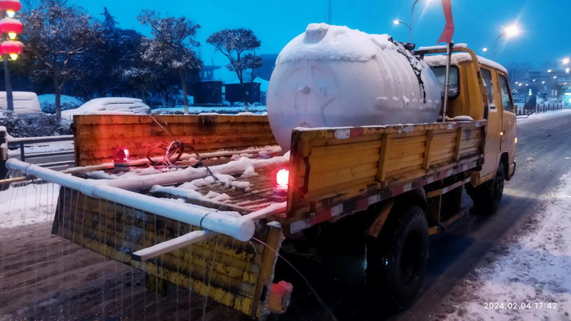 ? ? ? ? 今天(2月4日),港城普降暴雪,臺(tái)北華茂全員出動(dòng)500余人次,大小機(jī)械100余臺(tái)(班),全力確保了轄區(qū)交通線暢通。這中間,出現(xiàn)一臺(tái)除雪“核武器”,這就是翔立分公司自制的鈣液噴淋除雪車。