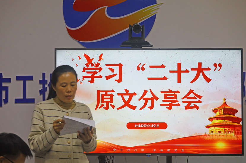 10月21日,臺北投資公司黨委組織召開黨的二十大報(bào)告學(xué)習(xí)交流會,每位同志閱讀報(bào)告原文,針對報(bào)告內(nèi)容結(jié)合工作實(shí)際,分享心得體會、暢談工作思路、謀劃未來發(fā)展。