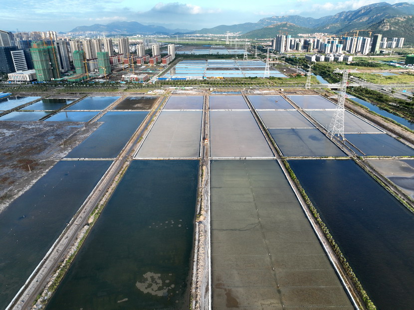 9月21日,從空中俯瞰海州灣公司的鹽田,猶如一塊塊調(diào)色板。