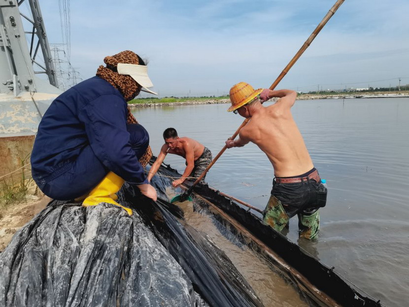 回程途中,我們又經(jīng)過(guò)鈣液生產(chǎn)灘地,廣大職工在鈣液銷(xiāo)售旺季,趕進(jìn)度、搶工期。在海濱泵站,徐松保師傅正在室外查看鈣液計(jì)量表,為鈣液車(chē)開(kāi)具單據(jù)。據(jù)了解,他一天在室外要為20余輛鈣液車(chē)開(kāi)單子,中午吃頓飯出出進(jìn)進(jìn)幾次才能吃完,衣服濕了干,干了濕,十分辛苦!在先鋒泵站,程輝師傅撩起工作服擦了擦臉上的汗水,繼續(xù)將潛水泵安置到已廢棄的灘地里,把灘地里的雨水抽干,將廢棄的灘地利用起來(lái)晾曬低濃度的鈣液,解決銷(xiāo)售旺季成品鈣液供不應(yīng)求難題。用廣大職工的話:天氣再熱,困難再多,也擋不住我們沖刺生產(chǎn)18萬(wàn)方鈣液的腳步。
