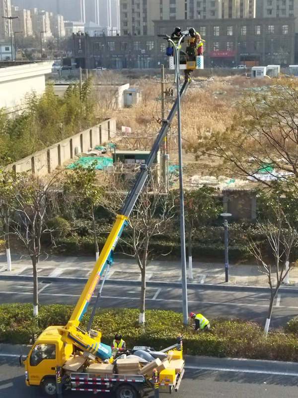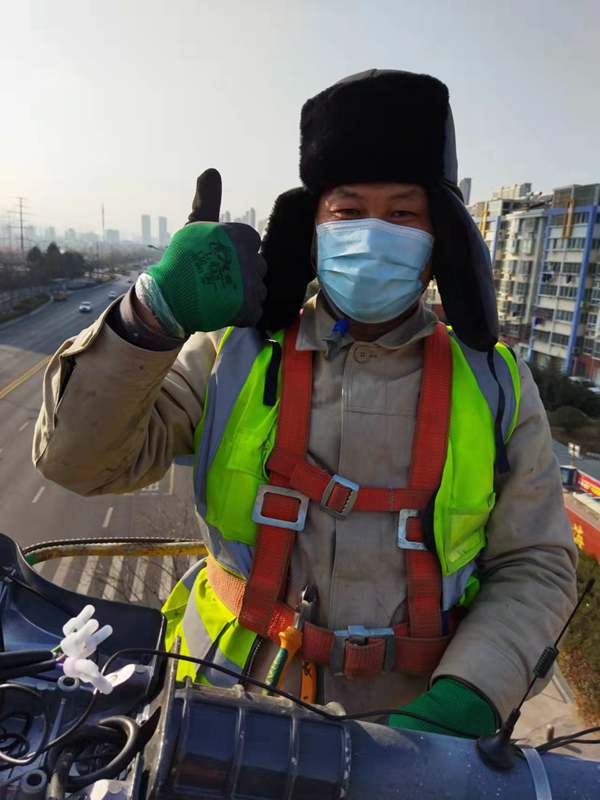 ?該項(xiàng)城市照明提升工程工程量大(約6500套路燈),工期緊。為了趕時(shí)間進(jìn)度,翔立“鐵軍”們由12月27開(kāi)始施工,日以繼夜、馬不停蹄的連續(xù)奮戰(zhàn)在工程一線,沒(méi)有一個(gè)人掉隊(duì),沒(méi)人喊苦叫累,個(gè)個(gè)都像鉚足了勁的“小牯牛”。肩帶《安全員》紅袖章的工程負(fù)責(zé)人喬以成騎著電瓶車(chē)不時(shí)地在海寧大道上來(lái)回穿梭著,“王師傅,高空作業(yè)車(chē)四條支撐臂必須支撐平穩(wěn)牢固后再提升哦”,“段青春,把前方施工的警示牌擺在車(chē)輛后面,還有道路安全錐桶一定要將作業(yè)區(qū)域圍起來(lái),與后面來(lái)車(chē)方向保持安全距離。”在市區(qū)人流密集的道路上同時(shí)有5臺(tái)登高作業(yè)車(chē)分區(qū)域高空作業(yè)的情況下,他最放心不下,畢竟是高空作業(yè)!為了防止高空墜落,登高施工操作人員全部按要求規(guī)范佩戴安全帶、系好安全繩、絕緣鞋、防寒安全帽、警示馬甲一應(yīng)俱全,武裝整齊。為防高空落物,作業(yè)車(chē)吊籃內(nèi)使用的工具全部系上“失手繩”,安全施工是必要的前提,有措施,有辦法,畢竟千條萬(wàn)條,安全才是第一條!