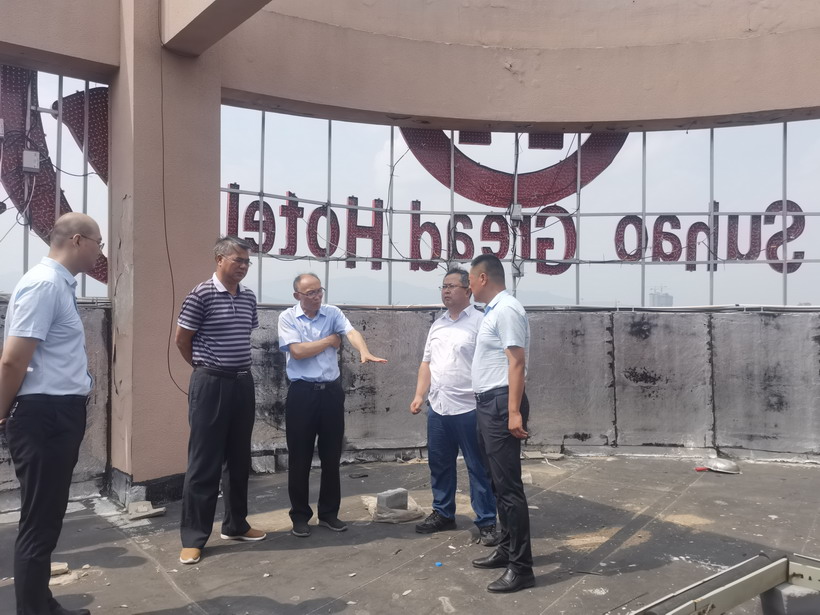 為進一步吸取蘇州酒店塌樓事故教訓,近日,臺北投資公司全面加強建筑施工領(lǐng)域安全生產(chǎn)檢查。7月14日集團公司安監(jiān)部胥廣會等領(lǐng)導一行檢查了公司租賃客戶蘇豪大酒店裝修工程。