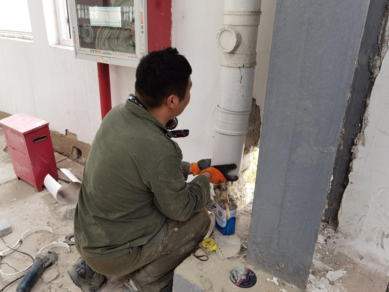 為防止雨水進入廠房,破壞廠房基礎結構,翔立分公司搶時間,公司職工立即行動起來對海州灣公司三號廠房排水管道急需改造。在排水管道的位置打破墻壁,鉆好孔洞,然后他們將原有不合理的管道進行切割,再用膠水黏合好角度向外的接頭,確保雨水能夠全部排到廠房外,保障了投資公司的財產安全不受到天然災害的損失。