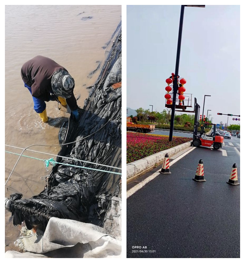 復(fù)曬灘上,昨天冰雹造將擋浪布擊的千瘡百孔,為了保住勞動(dòng)成果,天還未亮?xí)r,翔立人就走上灘頭進(jìn)行搶修更換,以確保利用好天時(shí)退布復(fù)曬生產(chǎn)高濃度鈣液,實(shí)現(xiàn)鈣業(yè)的產(chǎn)銷再創(chuàng)新高。