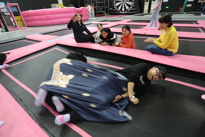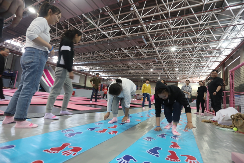 團建活動中,兩個隊伍的成員通過頭腦風暴為自己的隊伍分別取名為“黛玉隊”和“寶釵隊”,分別由看起來比較柔軟實際也很柔軟的王茜和看起來很有力量,實際也很有力量的宋文靜帶領(lǐng)。大家喊出來鼓舞人心的口號,簡單的取名、口號環(huán)節(jié)起到了破冰的作用,瞬間拉近了隊員之間的距離。拓展訓練中,青年們共同配合,迎難而上,大膽挑戰(zhàn)自我,“重走長征路”、“黨史60秒”、“四平八穩(wěn)”等緊張激烈的對決中,每個團隊齊心協(xié)力攻克了一個個最初認為不可能完成的項目,共同分享了成功的喜悅和挑戰(zhàn)的激情,充分地體會到了團隊信任、合作共贏、換位思考、永不言敗的重要意義,圓滿完成了拓展訓練任務(wù)。