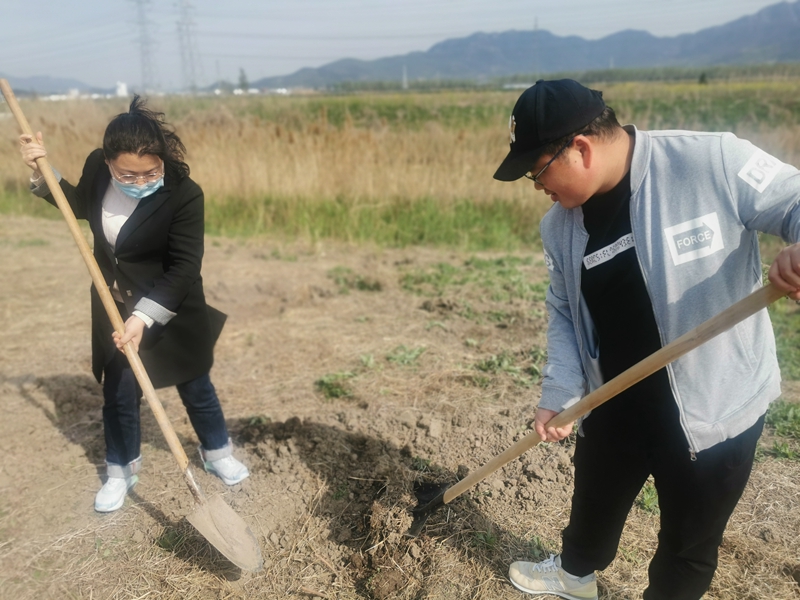 乍暖還寒,春意萌動。大家三、兩人一組分工合作、默契配合,各個環(huán)節(jié)銜接有序,每道工序認真細致,嚴格按照栽種標準,確保植一顆活一顆,栽一片綠一片。在大家共同努力下,一顆顆樹苗立于地間,煥發(fā)出勃勃生機,形成一道靚麗的風景線。