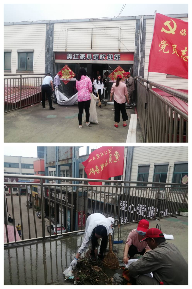 圍繞臨達(dá)公司資產(chǎn)經(jīng)營業(yè)務(wù),7月21日,臨達(dá)黨支部組織開展“黨員奉獻(xiàn)日”活動(dòng),志愿服務(wù)隊(duì)到光伸家具市場,對(duì)過道、門前的環(huán)境衛(wèi)生進(jìn)行了清掃。通過活動(dòng)開展,與商戶對(duì)營造良好經(jīng)營氛圍形成共識(shí),共同打造干凈、整潔、舒適的營商環(huán)境,提升臨達(dá)公司形象,促進(jìn)公司與商戶的和諧關(guān)系,形成人人參與、齊抓共管的良好氛圍。