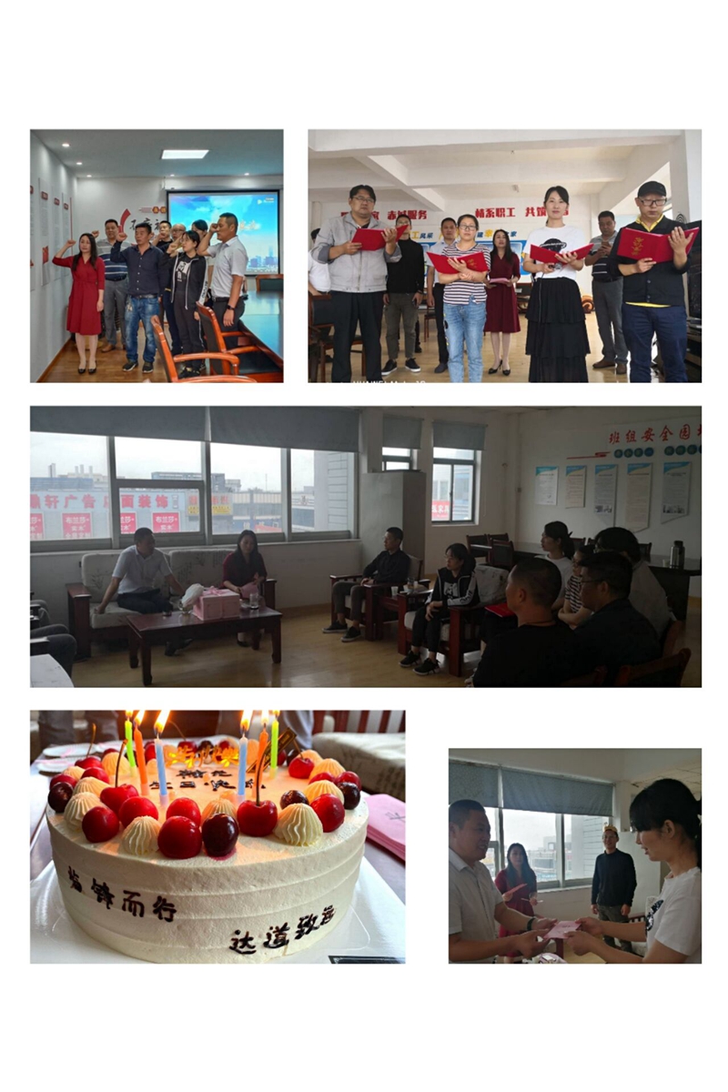 書記致辭。為黨員同志送上暖心祝福話語,向職工群眾提出爭先奮進希冀,替臨達公司樹立更進一步目標。重溫誓詞。進一步增強黨性,牢記黨的宗旨,恪守黨的紀律,堅定理想信念,充分發(fā)揮先鋒模范作用。贈送賀卡。書記親手為黨員同志們制作賀卡、寫下寄語,送到黨員同志們的手中。集體誦讀。全體職工高聲朗誦了詩詞《我的祖國》,激發(fā)愛國熱情,陶冶愛國情操。活動最后,公司工會為職工精心準備了豐盛的生日餐,讓職工深深體會到來自“娘家人”的溫暖。