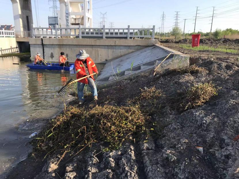 盛達市政分公司通過巡查發(fā)現(xiàn),佟圩河河道水草泛濫成災,導致河道堵塞, 水流不暢,給周邊環(huán)境和生態(tài)系統(tǒng)帶來了嚴重的影響。為確保轄區(qū)河道擁有一個“水清、岸綠、河暢、景美”的生態(tài)環(huán)境,該分公司立即調(diào)配5名水性較好的員工,于4月24日上午,對該水域的水草及雜物進行打撈清理。