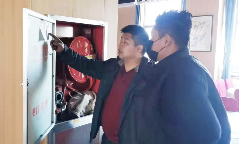 32日,臨達分公司安全管理小組,對金安貨場、蘇豪大酒店、光伸二樓家具館進行安全檢查。